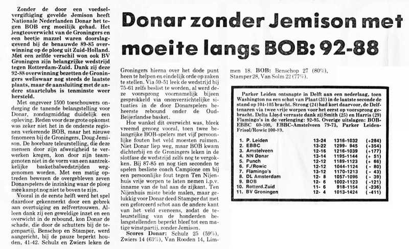 Donar zonder Jemison met moeite langs BOB: 92-88