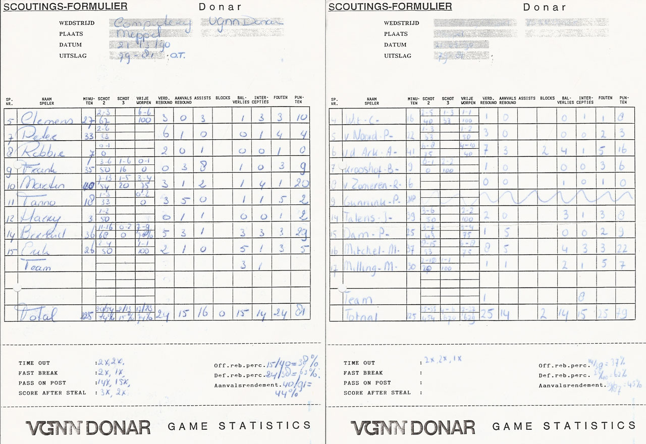 | 10-02-1990 | VGNN Donar – DAS Delft | 100 – 87 | |