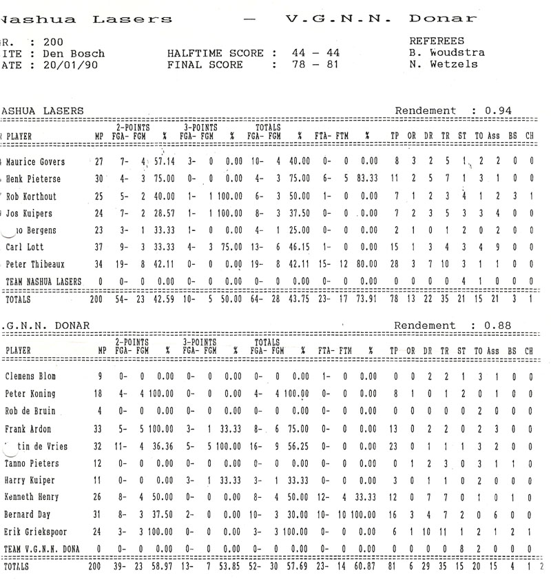 | 20-01-1990 | Nashua Den Bosch – VGNN Donar | 78 – 81 | |