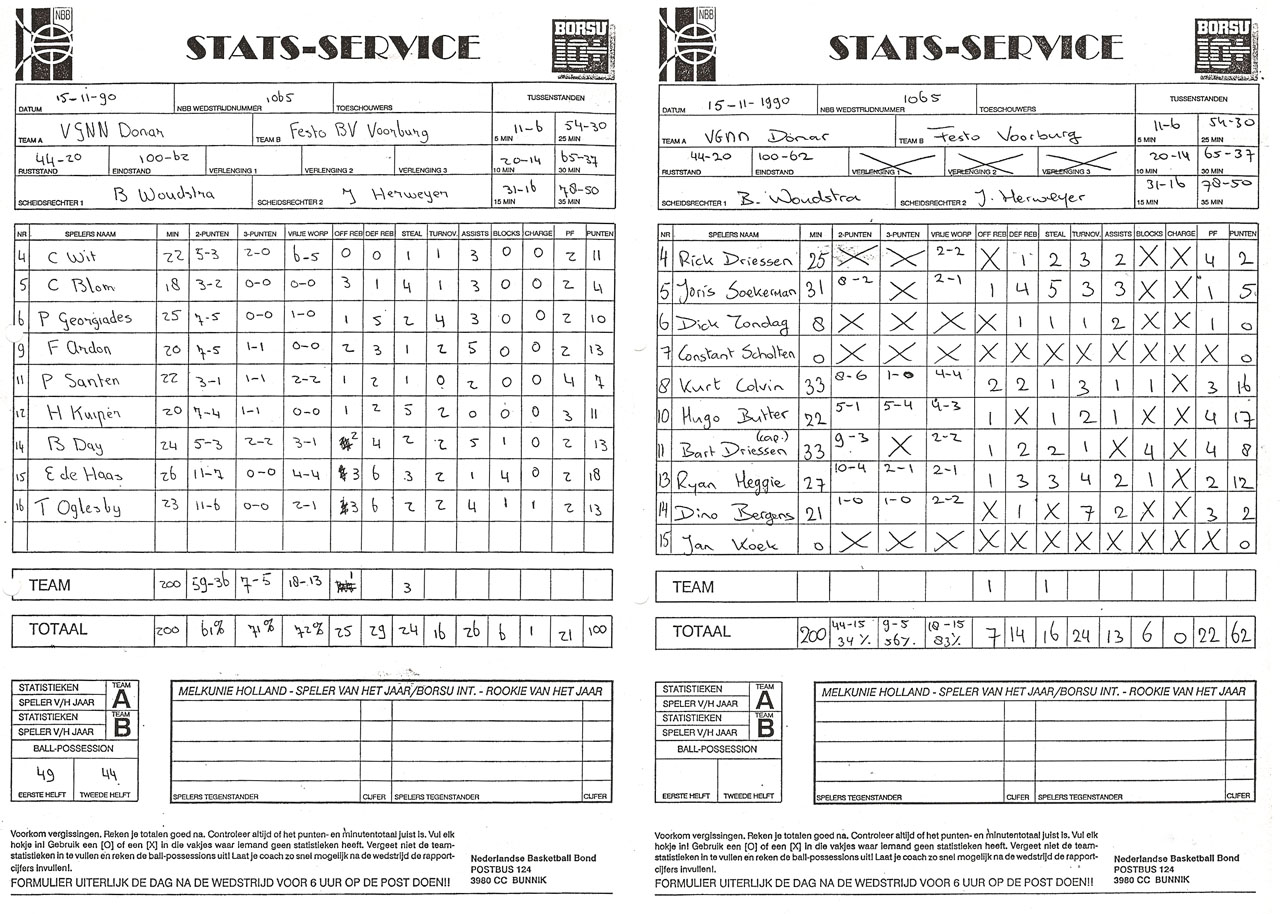 | 09-09-1990 | Canadians Amsterdam – VGNN Donar | 70 – 60 | |