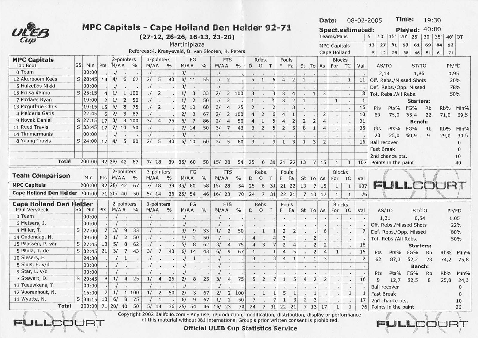 | 02-10-2004 | Cape Holland – MPC Capitals | 89 – 114 |
