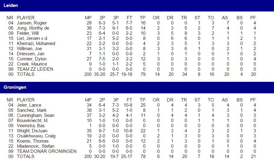 | 21-09-2014 | Donar – Challenge Sports Rotterdam | 82 – 69 | |